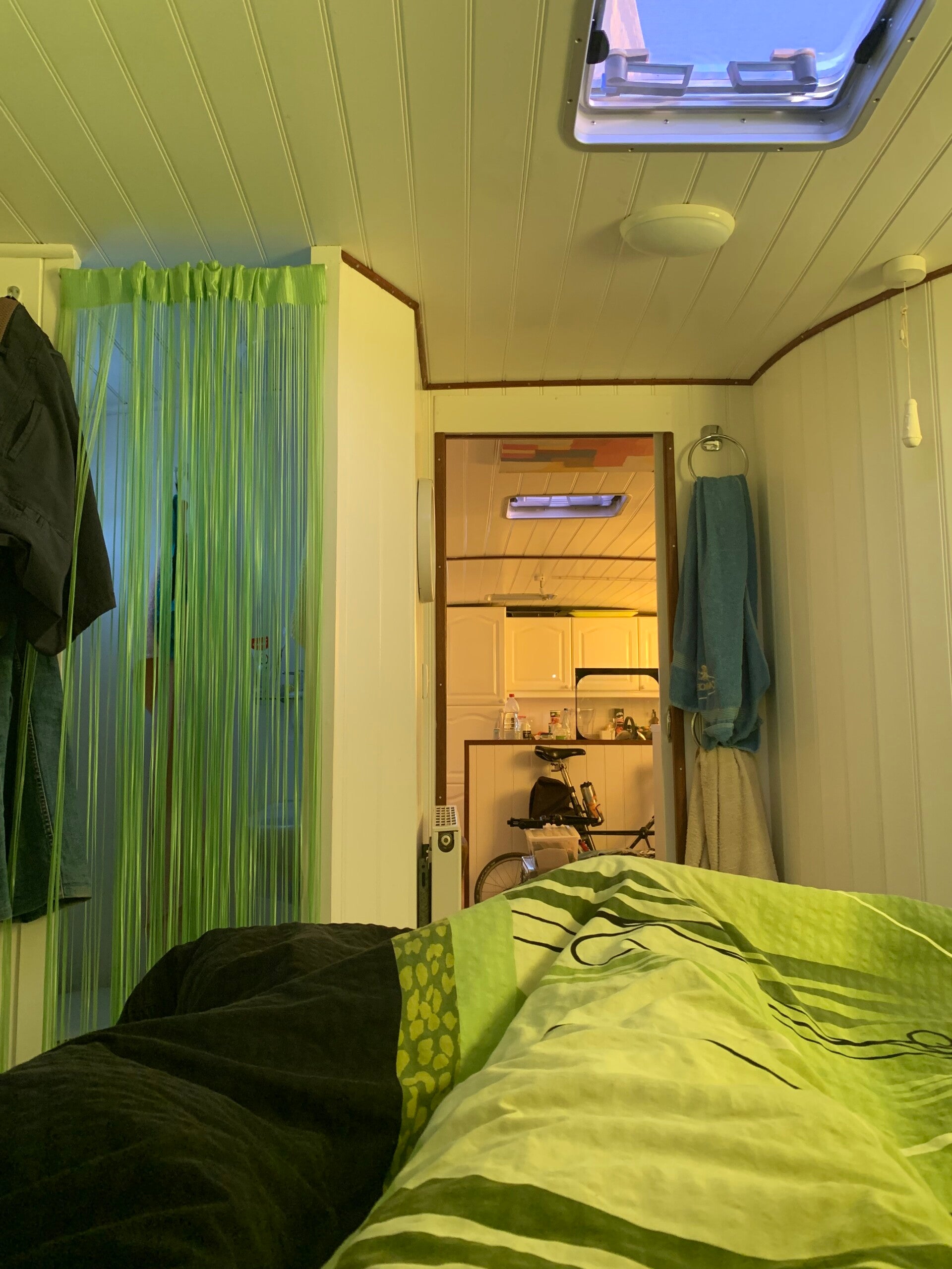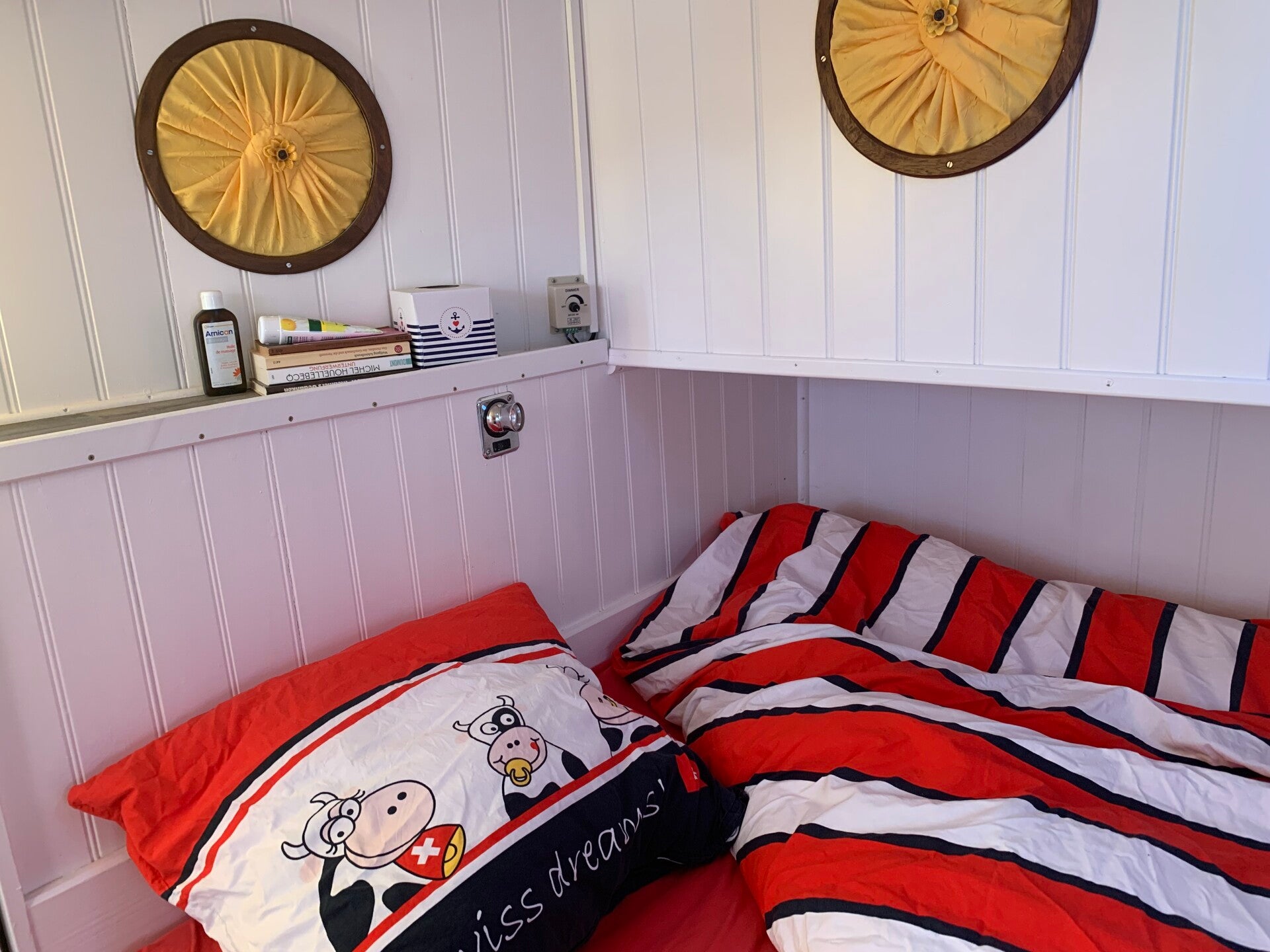 Im Wohnraum befindet sich ein Sofa, das bei Bedarf in ein Doppelbett verwandelt werden kann.